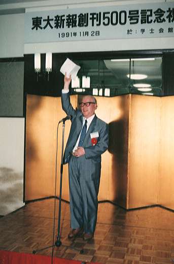 万歳三唱の音頭を取る古川哲史氏(東大名誉教授)