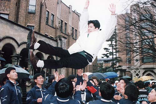 合格して喜びに浸っている受験生たちを、運動部のラグビー部や漕艇部などが胴上げを行ったり、記念写真を撮ったりと、合格発表会場の恒例となった行事も見られた。